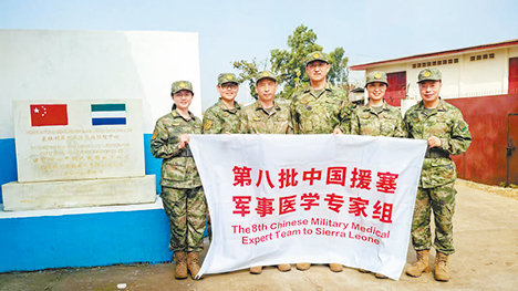 2016年以來,中國人民解放軍派出多批軍事醫(yī)學(xué)專家組跨越萬裡來到塞拉利昂,接力提供醫(yī)療健康服務(wù),累計救治患者1.13萬余人次?!败娽t(yī)組為我們的醫(yī)療衛(wèi)生事業(yè)作出了突出貢獻(xiàn)?!比嚎偨y(tǒng)比奧表示,“塞中醫(yī)療衛(wèi)生合作見証了兩國傳統(tǒng)友誼的建立和發(fā)展,將在未來繼續(xù)促進(jìn)兩國民心相通、合作共贏?!?/p>